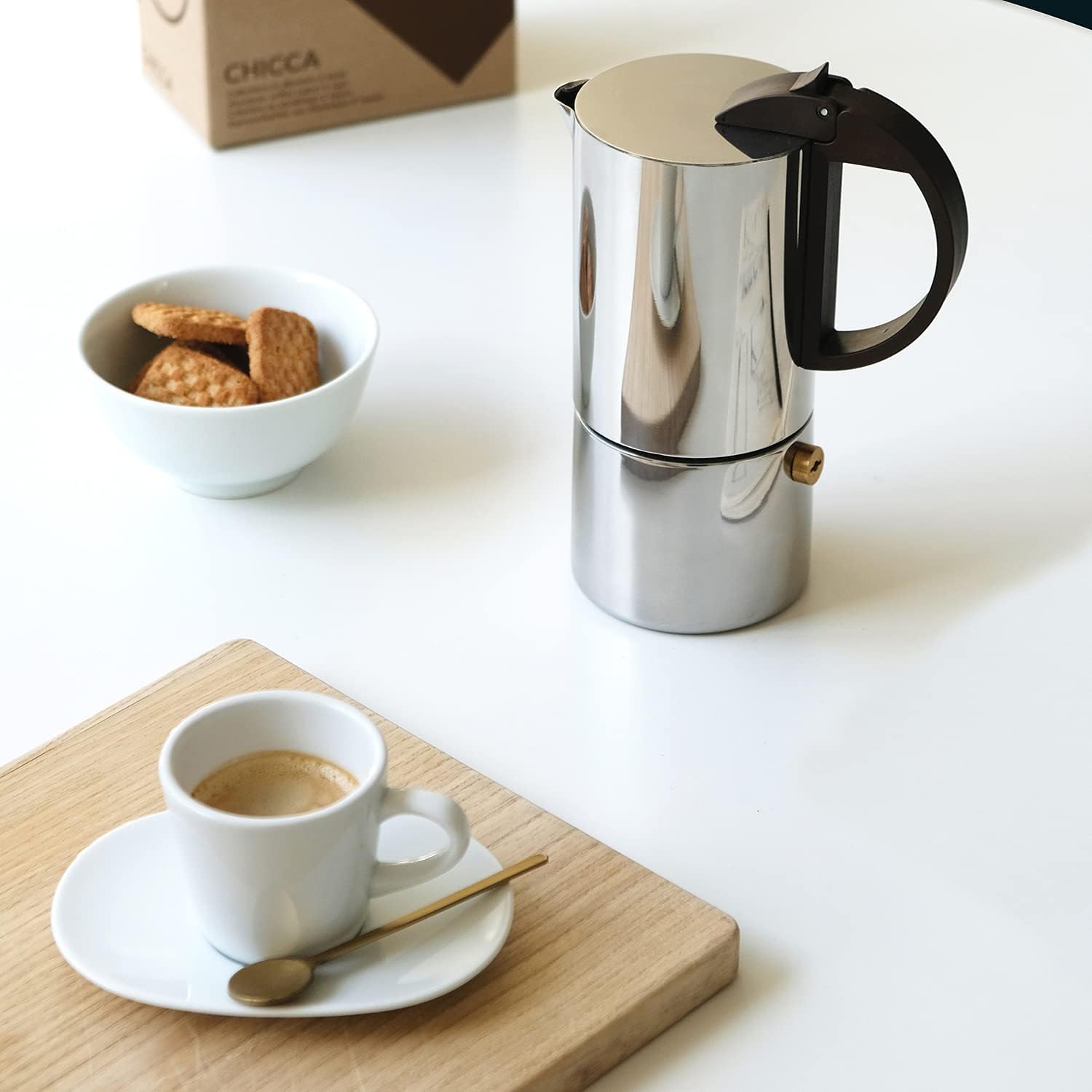 The Chicca espresso maker is presented in a classic, timeless stainless steel design. The round, straight shape gives the cooker a particularly attractive look and special elegance. A timeless classic. gnali&zani stands for timelessly elegant design and highest coffee enjoyment: Whether colourful or discreet variants – with the traditional espresso makers from the Italian brand, the finest taste and best aromas come into the cup. Coffee love is very important here. Ganli & Zani also has a lot to offer in terms of cutlery, the cutlery sets impress with their extraordinary design, as well as the balanced shape and its comfortable handles. Thanks to a wide range of colour tones, Gnali&Zani makes it a breeze to add a touch of distinctive elegance to any table setting. Elegance "Made in Italy".