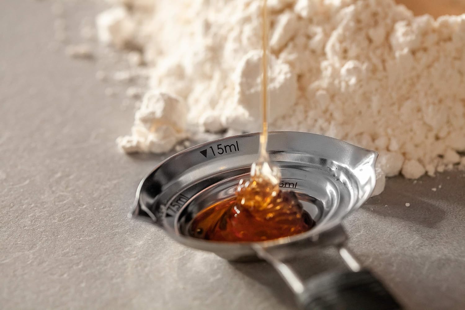 Be the most efficient baker around with this all in one measuring spoon from MasterClass. This compact kitchen tool incorporates four of the most useful measuring spoons into the space of one tablespoon measure. It’s ideal for making the most of your kitchen space, and thanks to its ingeniously simple design, it’s sure to become an essential gadget in your kitchen arsenal. It eschews overcomplicated adjustable mechanisms, instead collapsing all four spoon measures into a single scoop. Simply pour your ingredients up to the clearly marked measuring lines - it’s gradated with millilitre markings for half a teaspoon (2.5ml), one teaspoon (5ml), half a tablespoon (7.5ml) and one tablespoon (15ml). The curved handle keeps it level when resting on surfaces, so it’s easy to pour your ingredients in without mess. The spoon is made of high-quality stainless steel, which is easy to clean, rust resistant, and suitable for wet and dry ingredients. The metal handle has a comfortable silicone grip, plus a looped end that can be hung up for storage. Dishwasher safe.