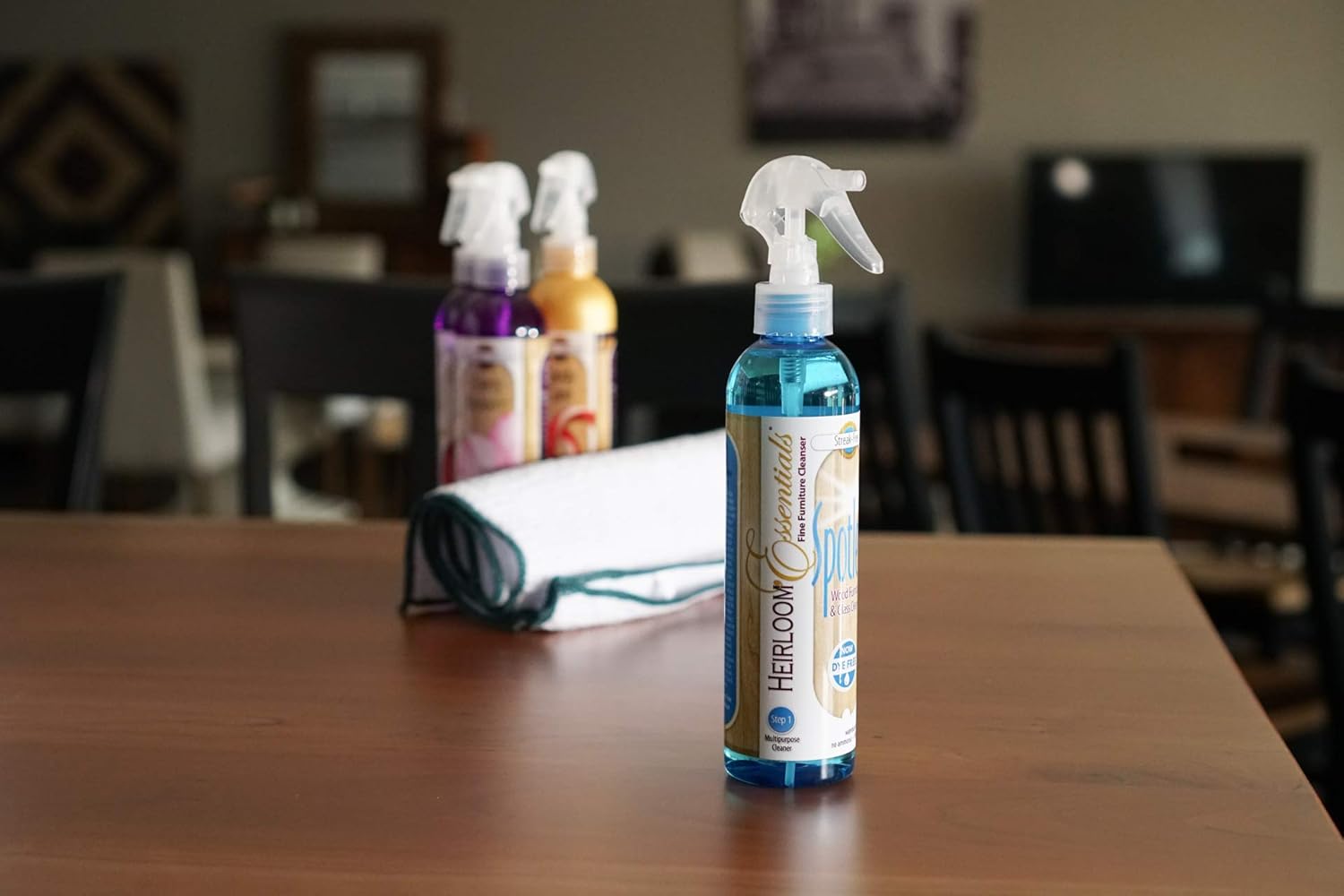 Heirloom Essentials Spotless Furniture and Glass Cleaner is a great way to get your fine wood furniture clean and ready for polish! This gentle, water-based cleansing formula was developed with only the finest cleaning agents and can be used on both glass and wood surfaces. It is tough on dirt, grease, grime, and fingerprints, while being gentle on varnish. Try pairing this cleaner with the Heirloom Essentials Fine Furniture Polish, available in 17 scents, to keep your wood furniture in it's best condition! Included: 3 - 8 Fluid Ounce Bottles of the Heirloom Essentials Spotless Furniture & Glass Cleaner. 3-Pack of Microfiber Cleaning Towels. *Please note that towels included with purchase may be either white or purple.*