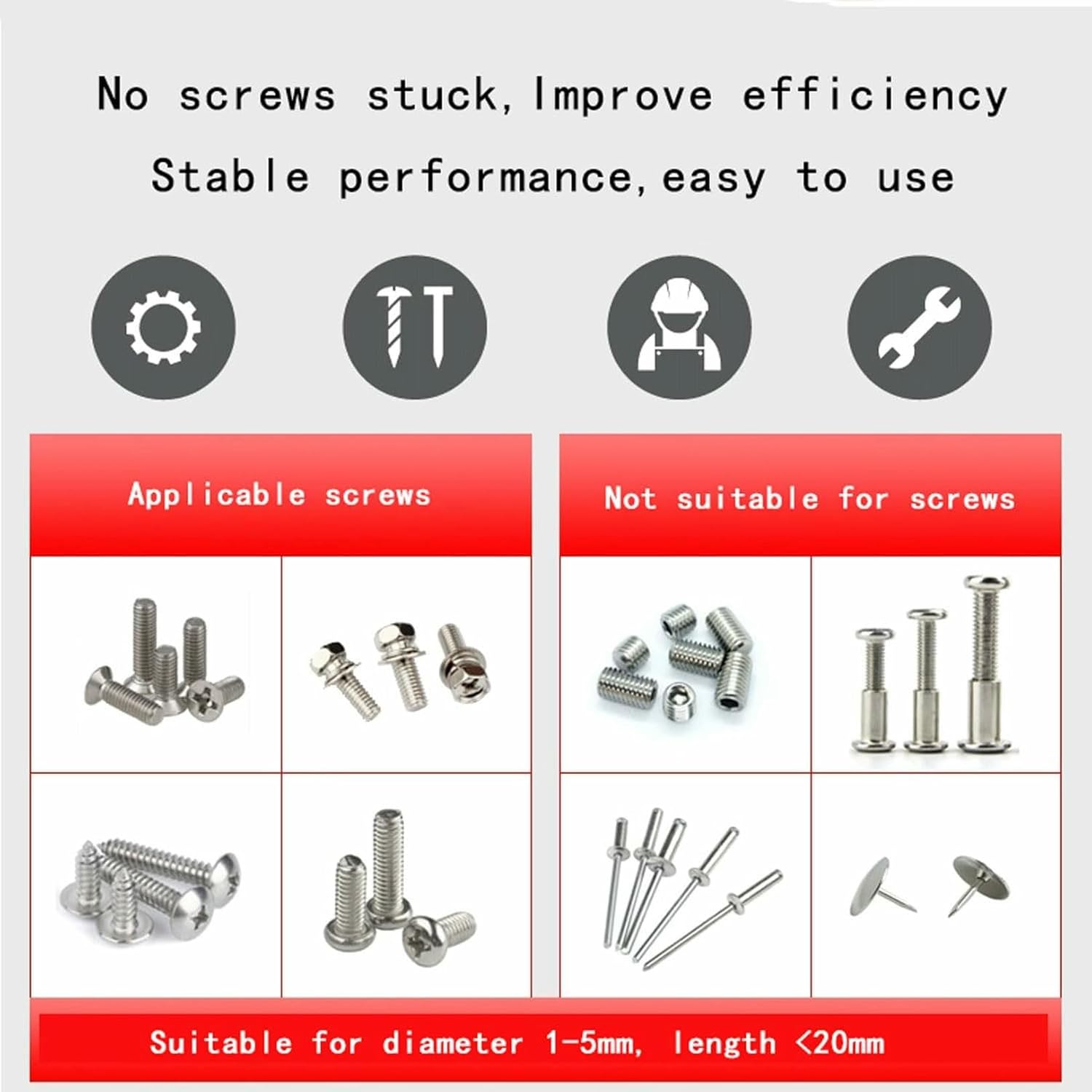 The Automatic Screw Counting Machine is engineered for efficient small batch packaging and precise part counting, allowing you to obtain a preset number of screws with just one touch. Key features include: 1. Customizable quantity settings from 0 to 9999. 2. High-precision counting for accurate results. 3. Versatile application with an adjustable track size ranging from 1.0 to 5.0 mm. 4. Compact and lightweight design for easy countertop placement. 5. Fast discharge speed of approximately 90 pieces per minute. Specifications: Name: Automatic Screw Counting Machine Input Power: AC100-240V, 50/60Hz, 1A Size: 127MM x 182MM x 150MM Screw Length: Up to 20MM Track Width: Adjustable between 1.0MM and 5.0MM Compatible Screw Types: Screws with nuts Screw Capacity: [M1: Approximately 1500 pieces] [M2: Approximately 1000 pieces] [M3: Approximately 600 pieces] [M4: Approximately 300 pieces] [M5: Approximately 200 pieces]