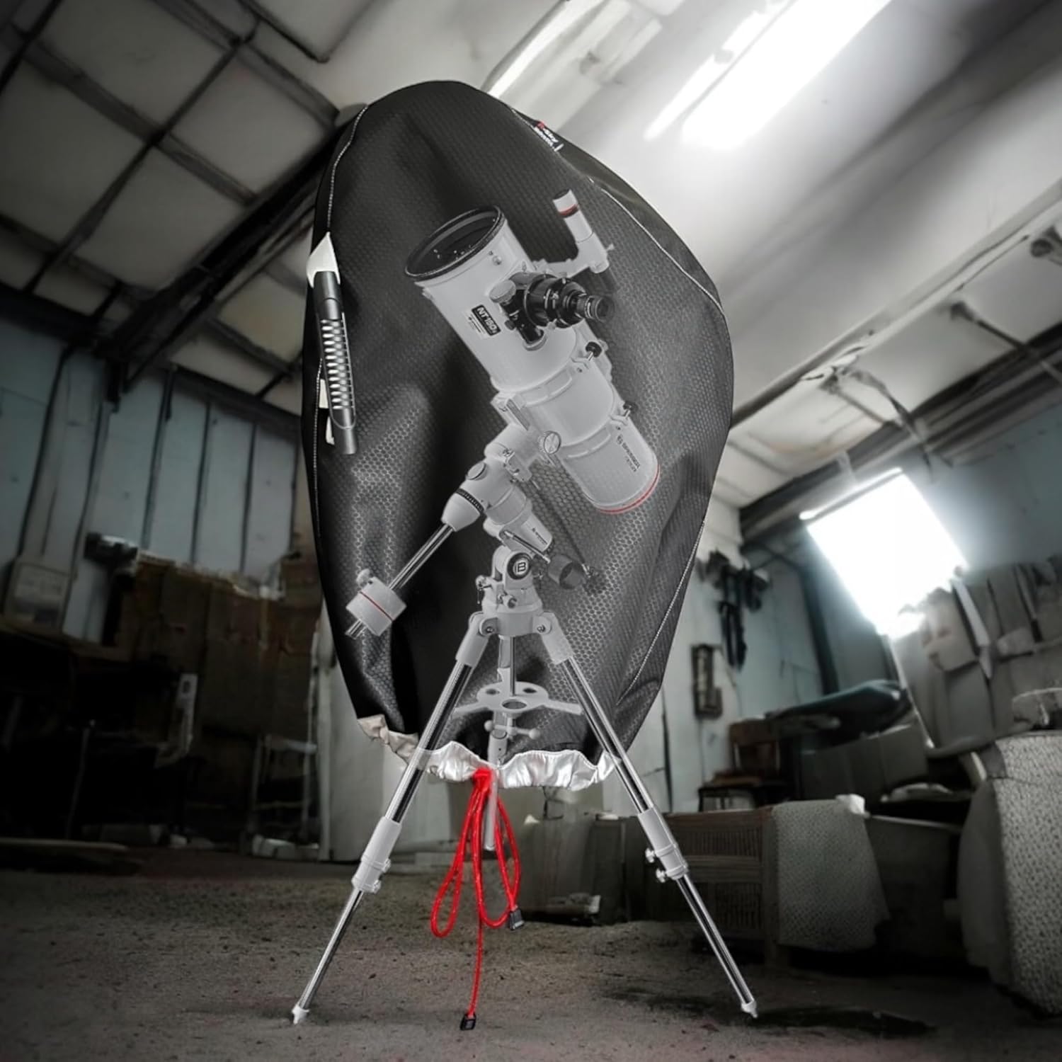 ๐ญ Premium Protection for Your EQ/GEM Mounted Telescope Protect your valuable telescope with the R-Sky Standard Plus Cover, specially designed for instruments on EQ/GEM mounts. ๐จ Available Colors: Sleek Black Elegant Silver ๐ Fits: Refractors Schmidt-Cassegrain Telescopes (SCTs) Newtonian Reflectors Tube length up to 30 inches (76 cm) ๐ก๏ธ Key Features: UV-Resistant Ripstop Fabric Shields your telescope from harmful sun rays โ up to 800 hours of sun exposure without fading. Dust & Moisture Protection Keeps your optics safe from dew, dust, and moderate rain. Tear-Resistant Ripstop Durable hexagonal weave fabric prevents tears from spreading, offering long-lasting reliability. Adjustable Drawstring Closure Ensures a secure fit around your telescope and mount. Lightweight & Easy to Use Quick to put on and remove โ perfect for both indoor storage and temporary outdoor coverage. Convenient Access Points Designed with flexibility in mind โ works with your mounting hardware in place. ๐ฆ๏ธ Ideal For: Storage indoors or in observatories Star parties and public outreach events Short-term coverage between observation sessions ๐ Maintain your telescopeโs pristine condition and extend its lifespan with this thoughtfully engineered protective cover by R-Sky Astro Instruments.